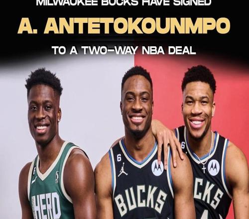 雷速体育10月14日宣 名记Shams今日在社交媒体上,报道了雄鹿与字母哥的弟弟亚历克斯·安特托昆博达成双向合