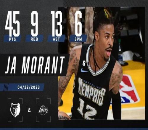 虽然灰熊季后赛首轮被湖人黑七(灰熊有伤病原因),但是系列赛,莫兰特场均交出24.6分6.8篮板7.0助攻,G2更是单场拿下45分9篮板13助攻,绝对称得上虽败犹荣。
