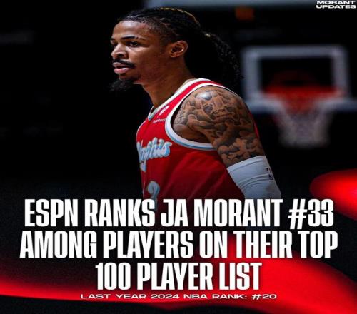 值得一提的是,此前ESPN的新赛季百大球员排名,莫兰特只排在了第33位,作为对比,2022年打出生涯高光后,莫兰特可是在ESPN的百大中名列第9,上赛季他的名次则是第20,新赛季掉到33,多少也能看出来媒体对他的不信任和不看好。
