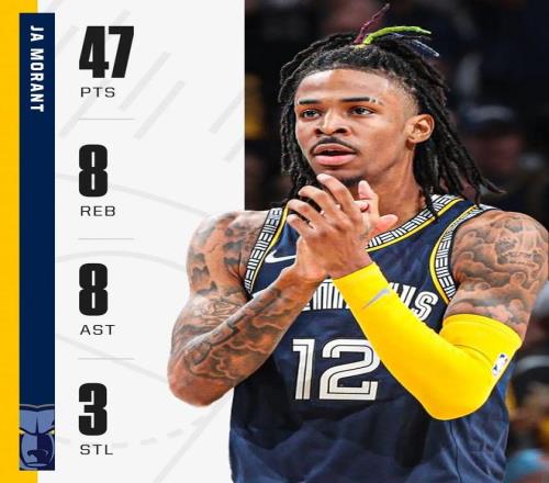 季后赛,虽然灰熊次轮出局,但莫兰特在前三场比赛: