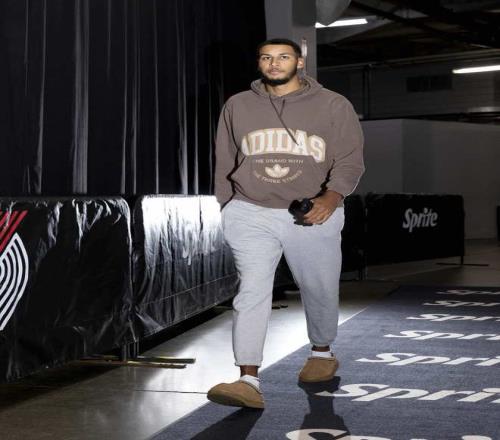 赛前,开拓者官方社交媒体晒出本场比赛的入场照,杨瀚森也在其中。