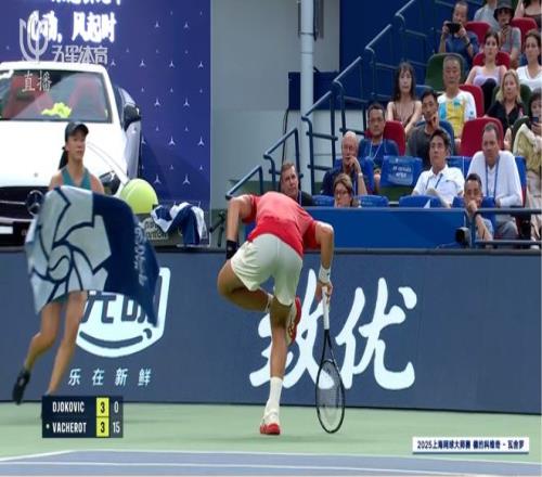 北京时间10月11日,2025上海网球大师赛第一场半决赛,德约科维奇对阵资格赛“黑马”瓦舍罗,比赛第一盘就出现了大家不想看到的情况……