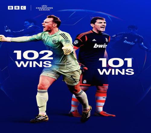 此役过后,诺伊尔的欧冠历史胜场数达到102场,超过了皇马传奇门将卡西利亚斯(101场),独占欧冠历史门将胜场榜榜首。