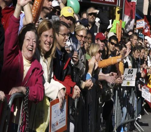 一张观众为马拉松跑者加油的照片。
