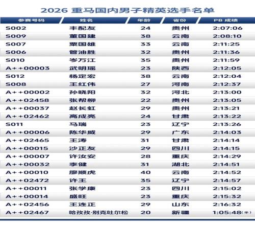 重奖之下,必有勇者。此次重马的参赛阵容颇有来头。国际男选手方面,26岁的阿迪苏·特斯法洪·塔费雷最好成绩是去年在塞维利亚马拉松跑出的2:06:27,他也将成为本届重马破赛会纪录最有力的人选之一;另外两位国际男选手也都在207和208的水平,都有机会夺冠并破赛会纪录。而四位国际女选手的最好成绩都要好于重马国内卫冕冠军丁常琴。